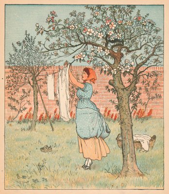 (The Maid was in the Garden Hanging out the Clothes (colour litho))ランドルフ・カルデコット |