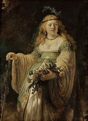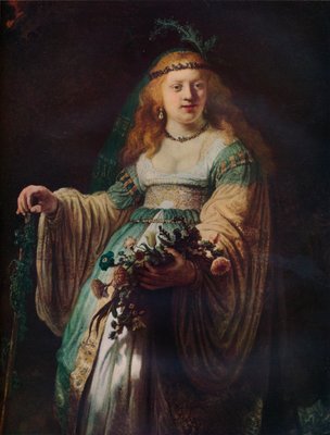 (Saskia van Uylenborgh, the artist's first wife, in Arcadian costume (oil on canvas))レンブラント・ハルメンシュ。ファン・レイン |