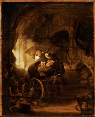 (Tobias heals his father's blindness (oil on panel))レンブラント・ハルメンシュ。ファン・レイン |