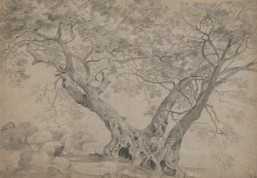 ネミ湖のほとりにあるアルブラサクラ、1754〜56年頃(紙に黒と白のチョーク)(The Arbra Sacra on the Banks of Lake Nemi, c.1754-56 (black and white chalk on paper))リチャード・ウィルソン |