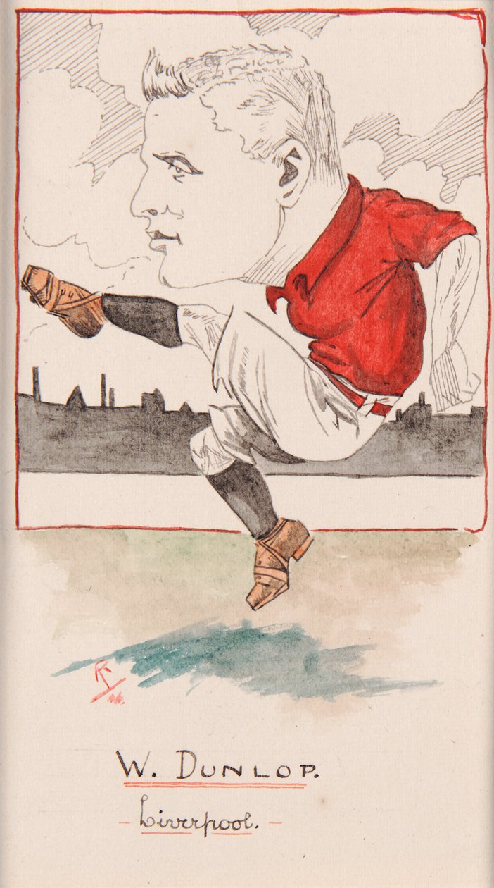 ビリーダンロップ、リバプール、シガレットカードのセットの描画、1907(カードにペンとインク)(Billy Dunlop, Liverpool, drawing for a set of cigarette cards, 1907 (pen und ink on card))裂け目 |
