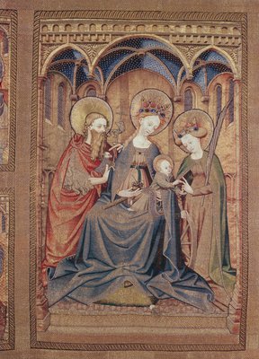 (Saint Mary and Child between Saint Catherine and Saint John Baptist, detail (Embroidery on linen, gold and silver thread, silk, velvet, pearls and glass))ロバート・カンピン |