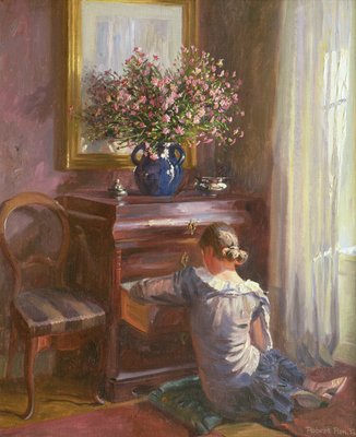 ローズガーデンで コペンハーゲン王立劇場のコンゲンス・ニュートフ 静かなひととき 平和な朝 窓で読んでいる女性 インテリア 窓辺で読書する女性 ピアノのあるインテリア 庭で インテリアで読書する女性 インテリアの女性 インテリアの女性