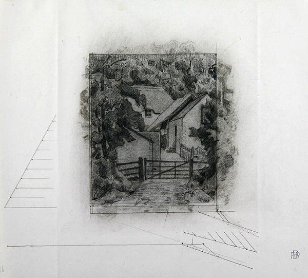 フィールドファーム、クレイヒドン、1917年(紙にクレヨン)(Fields Farm, Clayhidon, 1917 (crayon on paper))ロバート・ポヒル・ベヴァン |