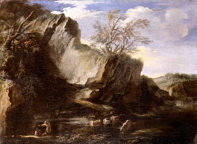 (Rocky landscape with herdsmen and cattle)サルヴァトールローザ |