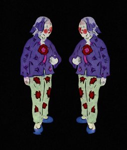 (Peasant soldier carrying a rifle. Painted paper cutting or "Jian Zhi", Chinese folk art, Pekin.)