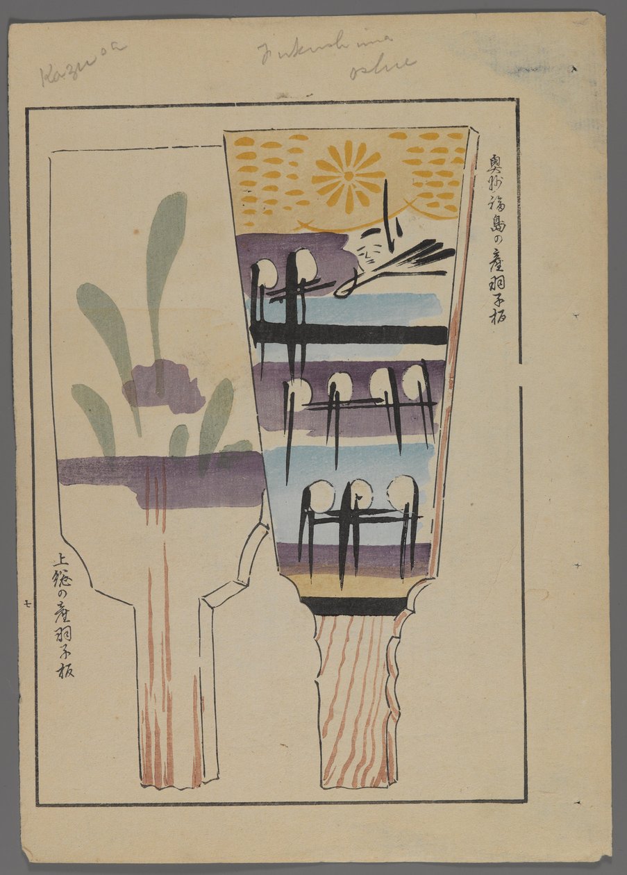 Japanese toys, from Unai no tomo (A Childs Friends) by Shimizu Seifu, 1891-1923. Hanetsuki paddles.(Japanese toys, from A Child's Friends. Hanetsuki paddles.)清水誠風 |