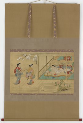 (Beauty reclining as visitors approach, Edo period, late 17th-early 18th century. )