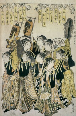 Hidematsu, Yasokichi, Izukiyo of the Otsuya (Otsuya uchi Hidematsu, Yasokichi, Izukiyo), from the series "Female Geisha Section of the Yoshiwara Niwaka Festival (Seiro niwaka onna geisha no bu)" 「山王神社の祭礼」シリーズより、麹町主催の提灯を担ぐ 宮詣りに女の赤ちゃんを運ぶ母親、カリフォルニア州。 1784年。 元材木町主催の提灯を担ぐ 「山王神社の祭礼」より ひで松、 八十吉、 伊豆清 おf テェ お通夜 fろm テェ セリエs ”フェまぇ 芸者 せc地温 おf テェ 吉原 にわか フェs地ゔぁl 年の終わり。 連載「山王祭礼」より 四季の花飾提灯(平川町・山本町・四季の花曼荼羅) 角玉屋売春宿の遊女小村崎とその付き添いの並地庵1775-80(木版) 扇屋の遊女花扇と従者の吉野、龍田 「ファッションモデル ひながたわかなのはつもよう」より 人物群(カラー木版画) 5人の日本人女性(カラー木版画) プレジャークォーターの7人の賢明な女性c。 1780年代半ば。 快楽の七賢人 元旦のおしゃれな群衆、1847-1852 グループ歌手、1781-1806 散歩に出かける、c.1780-95(カラー木版画) 俳優の私生活を描いた 4 枚の無題の版画シリーズから、5 代目俳優市川團十郎とその家族 七つの変化の踊りの岩井半四世c。 1793または1794。 扇屋家遊女の滝川と花扇 吉原の新華麗人写本鏡(シリーズ名) 吉原 慶成 新 美人 実筆 鏡 麹町一・二・三丁目町会 山王祭 子供灯籠流し 安永9年(1780)頃。 四代目岩井半四郎 七変化の舞 長治屋の花魁若草と付き添いの浅野、みどり 「ファッションモデル ひながたわかなのはつもよう」より 連載「歓楽街にわか狂言」より 花笠踊り ビンザサーラ 拍子の舞 Binzasara、ダンスとクラッパー。1790年代初頭。 連載「遊郭の江戸紫」より、長治屋の花魁雛鶴とその従者 髪置き、 fろm テェ セリエs ”あ Bろ過で おf エアs手rん マン絵rs (付属 東 の 錦)” 市川團十郎 5 世とその家族、1782 年。
