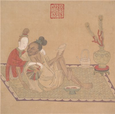 (Tartar Officer with Blond Lady (album leaf; ink and color on silk))