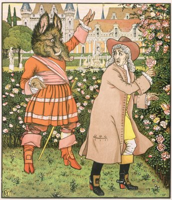 (The father of the beautiful picks roses in the garden of the beet. Illustration by Walter Crane (1845-1915) in “Beauty and the Bete”, England)ウォルター・クレーン |