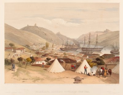 バラクラ、海に向かって、「東の戦争の席」、1856年からの版(Balaklava, Looking Towards the Sea, plate from 'The Seat of War in the East', 1856 )ウィリアムクリミアシンプソン |