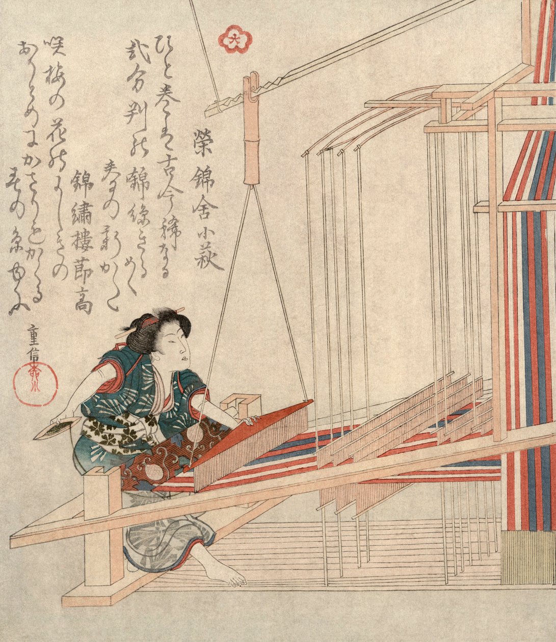 織り機で織る女(カラー木版画 絹を織る 「蚕養蚕(かいこやしなぐさ)」シリーズ 11 ウーマンウィービング(木版画) 手織機に座って機織りをする女性 1796年。 織り工場、カリフォルニア州。 1802年。 機織りをする女性 織機で若い女性 シルク布を織る女性、カリフォルニア州。 1800年。 シャトルを投げる 連載「養蚕手仕事草」より12号(じゅに) 一人は琵琶を、もう一人は琴を演奏している二人の女性(1815年頃)。 二人の宮廷人... 18世紀末から19世紀初頭 織機でのiWeaving c。 1797-1798 ターナーと助手 織機で織る女性たち シルクを織る、日本の女性のイラスト 箏に座る貴婦人 秋月弓之助の娘みゆき、のちに盲目の音楽家朝顔 (あきづきゆみのすけむすめみゆき、のちにのちにあさがお) 岡崎、シート番号のセクション。 連載「五十三次はりまぜ」第10話 魚谷北景による摺物木版画。 七福神の暗示-弁天(複製) (CBL J 2092) 「当代美人合わせ」より 松葉屋の花魁染之助と従者の若木・若葉 石、シリーズ 3 人の子供から